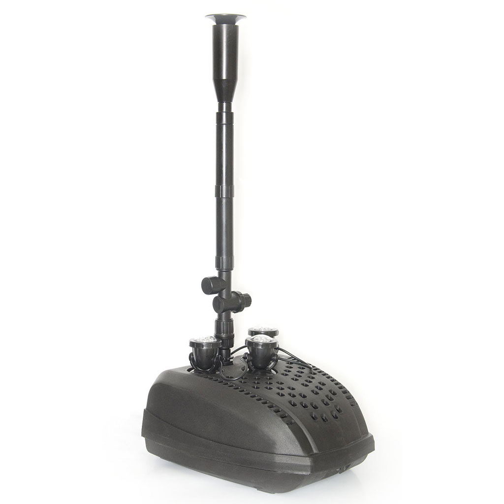 - · Σετ αντλίαςμε ενσωματωμένο φίλτρο και λάμπα UV. Κατάλληλο για λίμνες όγκου έως6000 lt. Περιλαμβάνειαντλία 2000 lt/h πουκυκλοφορεί το νερό διαμέσου του φίλτρου, της λάμπας UV και του ακροφυσίου.