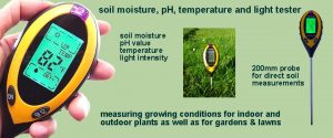 Η συσκευή μετράει πολύ εύκολα και αξιόπιστα σε γκαζόν, κηπευτικά ή γλάστρες καλλωπιστικών το pH (εύρος τιμών από 3,5-9), την εδαφική υγρασία (5 επίπεδα), την ηλιοφάνεια (9 επίπεδα) και την θερμοκρασία (από -9 έως +50°).